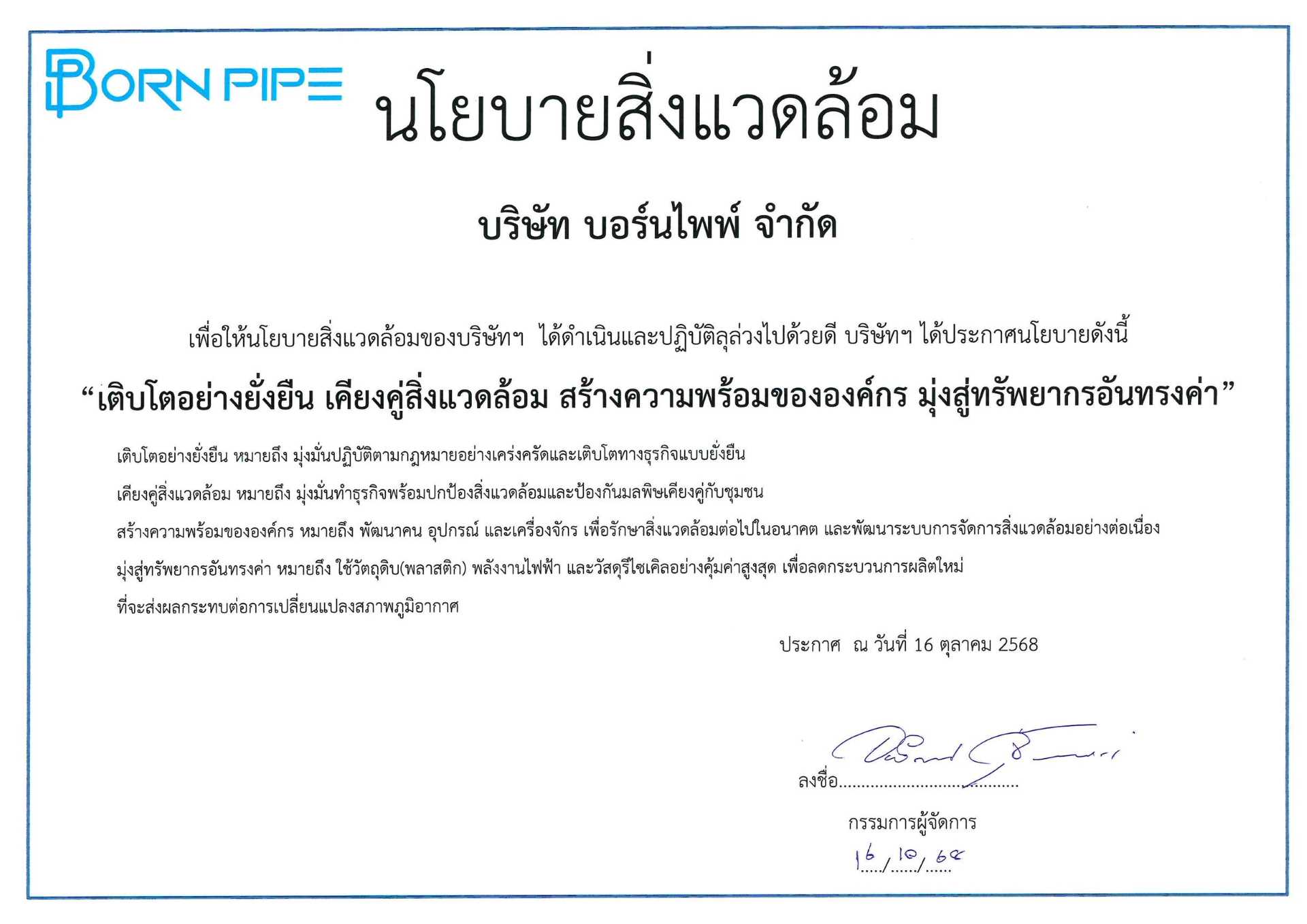 บริษัท บอร์นไพพ์ จำกัด เปิดดำเนินการมาแล้ว 11 ปี มีการเติบโตอย่างรวดเร็วด้วยกำลังการผลิต และยอดขายเพิ่มขึ้นจากเมื่อ 11 ปีถึง 15 เท่าตัว เป็นการเติบโตด้านผลิตภัณฑ์ PVC ทั้งหมด100%